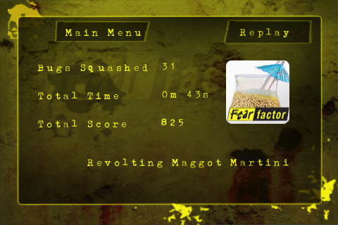Designed a game based on an external pitch to create a Fear Factor game on an incredibly small budget and short time frame. Based around a simple, yet addictive, gameplay mechanism of squashing bugs as they cross the screen with your finger before the timer runs out. After level is over user mixes up a bug cocktail and is able to post their unique cocktail created to Facebook.